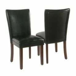 Contemporary and classic, the Edler Dining Chairs fit into a variety of environments with ease. The curved scoop seat makes for comfort, while the black metal legs are crafted for durability. The faux leather-like upholstery is accented with white quilting and baseball style stitching details. Set of Two.