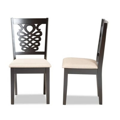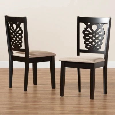 Imbue your dining space with the elegance of the finely crafted Gervais dining chair. Made in Malaysia, the Gervais is comprised of a sturdy wood frame showcasing a rich dark brown finish. The backrest features a unique, intricate cut-out design for enhanced visual appeal. Requiring assembly, the Gervais is fitted with a foam padded seat upholstered in smooth fabric for superb comfort. Straight legs add a touch of sleek, contemporary style, making the Gervais dining chair an excellent addition to the modern home.