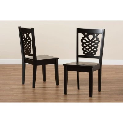 Imbue your dining space with the elegance of the finely crafted Gervais dining chair. Made in Malaysia, the Gervais is comprised of a sturdy wood frame showcasing a rich dark brown finish. A smooth scoop seat provides a casual and comfortable dining experience. Requiring assembly, the backrest showcases a striking geometric design for added visual appeal. Straight legs add a touch of sleek, contemporary style, making the Gervais dining chair an excellent addition to the modern home.