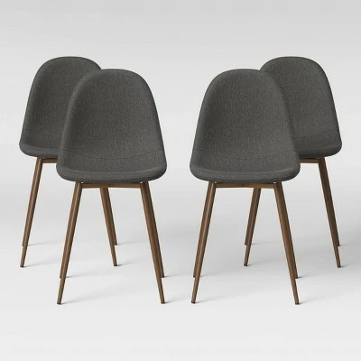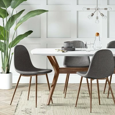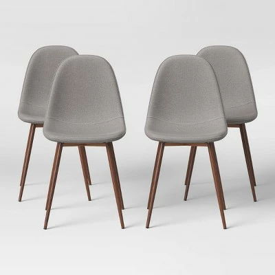 Add a touch of modern style and comfort to your dining area with this 4-Piece Copley Upholstered Dining Chair Set from Project 62™. This set of four dining chairs features a comfortable upholstered seat perched atop slightly outward angled legs, and it boasts an armless silhouette to deliver a comfortable seating experience that’s easy to slide in and out of at the table. Bring even more eye-catching appeal to your home’s aesthetic by positioning these chairs around your square or round dining table to complete a cohesive look.