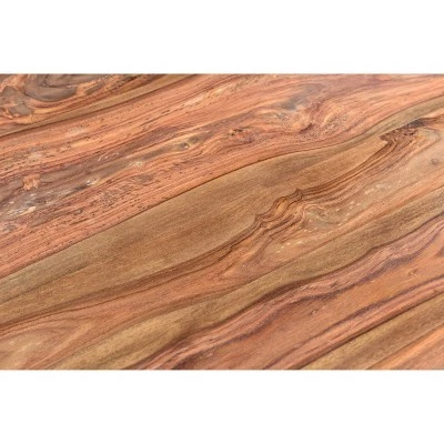 Add rustic charm to your living space with this stylish Astor bench from Carbon Loft. The attractive bench is crafted from live edge sheesham wood to create a completely unique design that shows off the natural beauty of the wood’s knots and cracks. Black finish, wrought iron frame legs add an extra touch of durability and modern flair to this beautiful bench.