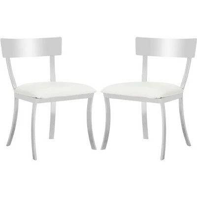 Inspired by the minimalist interiors of New York’s premiere modern art gallery, these contemporary side chairs (set of 2) bring a mark of distinction to the table. Its classic upholstery and shimmering metallic curves make it a designer favorite. Care Instructions: To prevent overall soiling, frequent vacuuming or light brushing is recommended. Cushions and pillows should be turned on a weekly basis. Down filled cushions should be brushed rather than vacuumed. Spot clean, using a mild water free solvent or dry cleaning product. Only a professional cleaner should undertake a complete overall cleaning. The use of steam or water based cleaners may cause excessive shrinking or staining.