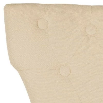 Jappic’s slightly curved and tapered backrest are made for drama. Shown in natural cream colored fabric and espresso finish on legs, exposed nail heads and button tufting add a classic touch to Jappic. Care Instructions: To prevent overall soiling, frequent vacuuming or light brushing is recommended. Cushions and pillows should be turned on a weekly basis. Down filled cushions should be brushed rather than vacuumed. Spot clean, using a mild water free solvent or dry cleaning product. Only a professional cleaner should undertake a complete overall cleaning. The use of steam or water based cleaners may cause excessive shrinking or staining.
