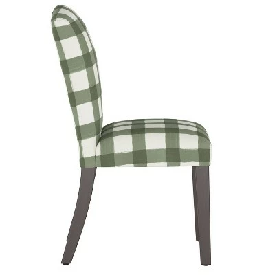 Dip just a toe outside of tradition with this uniquely shaped dining chair, hand upholstered in a rich fabric of your choice for a little extra pop and additional appeal. Each chair is made to order and manufactured in Illinois. The tapered legs are real wood and the frame is solid, making assembly quick and easy. These chairs make a fine selection that will hold up well and look superb while providing family and/or guests with a comfortable seating option.