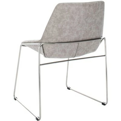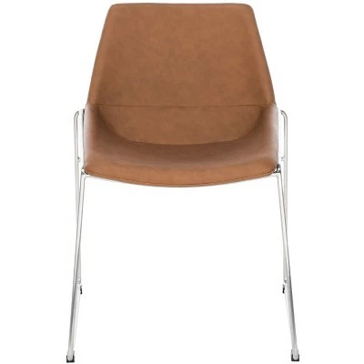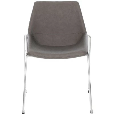 An investment in classic design, this deluxe Mid Century dining chair brings contemporary minimalist style to any dining room. Finely crafted with gentle curves, it features faux leather upholstery and slender metal legs. Sold in sets of two. Care Instructions: Dust regularly with a soft, dry cloth. Never use oiled or treated cloths on lacquered finishes. Some finishes can be wiped with a damp (not wet) cloth, followed at once by rubbing with a dry cloth to remove fingerprints and smudges. For persistent spots, gently clean with a soft cloth and a solution of water and mild soap, make sure to wipe dry. Use adhesive felt pads, coasters and placemats to protect your furniture.