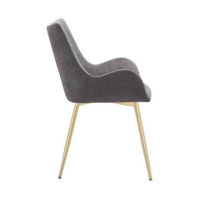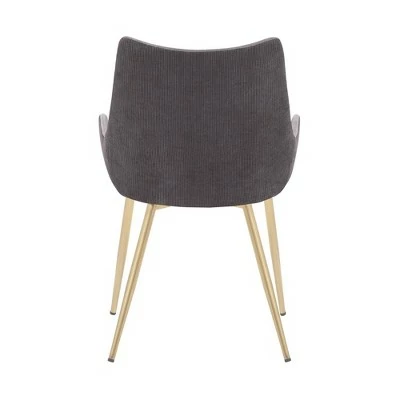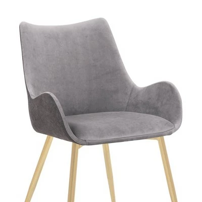 Add a touch of fashion forward glamour to your home with the Avery Two Tone Gray Fabric Dining Room Chair with Gold Legs. The soft fabric upholstery covers a high-density foam cushion that provides comfort for long sitting periods but also features ergonomic properties to keep your back healthy and properly aligned. This chair can easily be used in your dining room or kitchen as a dining chair, your home office, bedroom, or living room as accent chairs. The gold metal legs give the chair a luxurious look and make this chair a truly stand out piece of furniture that will provide comfort and durability for many years to come! The Armen Living Avery Fabric Dining Room Chair with Gold Legs is available in your choice of Blue, Dark Gray, Pink, or Teal upholstery and each feature gold metal legs.
