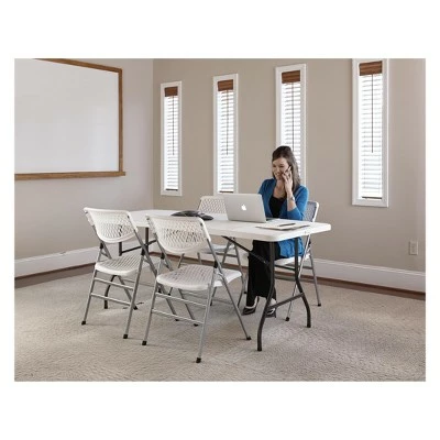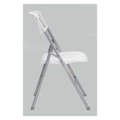 Portable and lightweight, the White Commercial Resin Mesh Folding Chair from Cosco makes for the best seating option for any event. Made with sturdy metal frame, this resin folding chair offers you and your guests a comfortable seat and back that flexes for a better seating experience. Easy to clean and maintain, this portable folding chair is perfect for any outdoor or indoor seating arrangement.