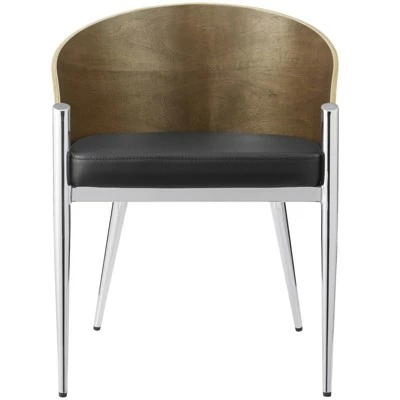 Invest energies in a natural way with the Cooper Dining Chair with Chrome Legs. Sit content as a renewed sense of urgency sweeps through the curved wooden back and four-legged contemporary design. Positioned firmly on three legs with a broad recreational fourth leg, remain open to possibilities while balanced by the constant support.