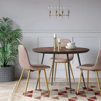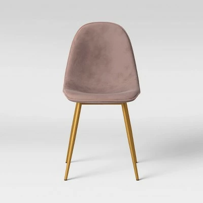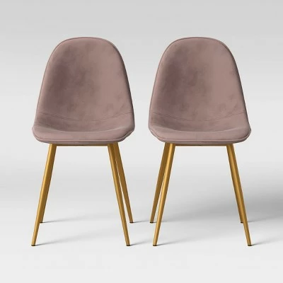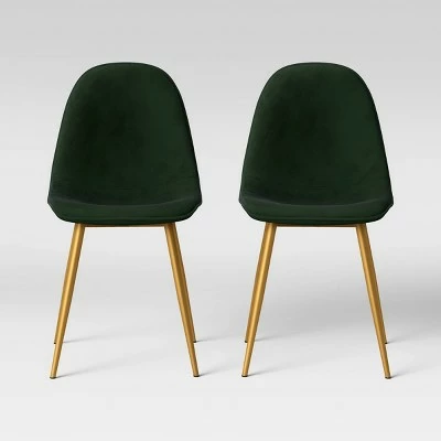 The Copley Velvet Dining Chairs With Brass Legs from Project 62™ are a charming addition to your dining room or living space. The velvet-upholstered chairs have padded seats and backrests with a curved silhouette for added comfort, and they’re supported by angled metal legs accented with a rich brass finish for added mid-century flair. Plus, these space-saving armless chairs fit in a variety of spaces, and they offer an unrestrictive seating design that allows for easy movement.