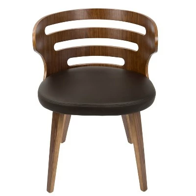 With its slotted and curved wood back and classic Mid-Century tapered legs, the Cosi Chair by LumiSource brings well-designed intrigue to any room. The padded seat comes in various contemporary fabric colors as well as a faux leather option. A sophisticated, whimsical, and unique piece sure to compliment your space and style.