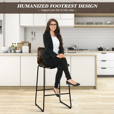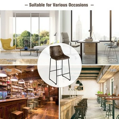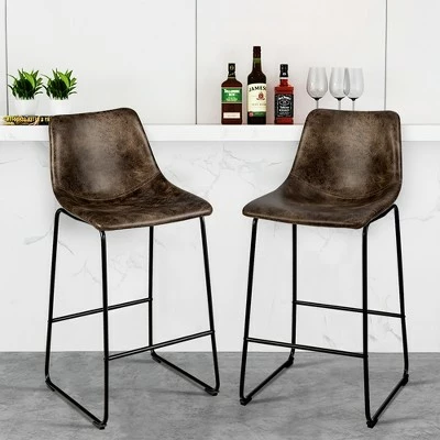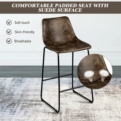 Our barstools set is an ideal furniture for you to update counter space! . The barstool is designed with elastic sponge seat and ergonomic curved backrest, which will provide optimal comfort and relaxation. Solid steel legs with non-slip and anti-scratch foot pads ensure good stability and safety. What’s more, elegant and vintage appearance will add eternal charm to your home. You can enjoy afternoon tea while chatting with friends to spend leisure time.. Specification: Color: GreyBrown. Material: Sponge+ Faux Suede+ Steel. Overall Dimension: 19” x 18.5” x 40”(L x W x H). Seat Height: 30” . Weight Capacity: 265 lbs. Net Weight: 29 lbs. Package Includes: . 2 x Bar Stools. 1 x Instruction.