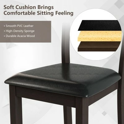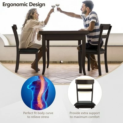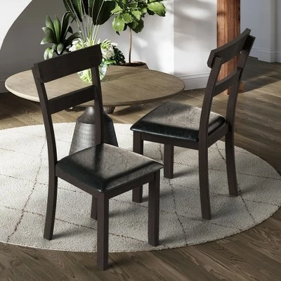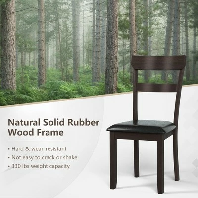 Our set of 2 dining chair is ready to bring your dining time to the next level.. With classic coffee design, the chairs will make your home more elegant and let you enjoy the meals cheerfully. When you feel tired, sit on it and lean to the back and you will feel yourself strongly supported by the backrest, which also perfectly fit your body curve to make you feel comfy. The thickened padded cushion can relieve your fatigue and let you feel relaxed. Reliable and high quality rubber wood frame ensures the stability and secures your safety. Besides, it is also easy to assemble and maintain, which saves your time and effort. How can you refuse such a customized dining chair as if it were specially designed for you? . Specification: Color: Coffee. Material: Rubber Wood, PVC. Overall Dimension: 21” x 18” x 38” (L x W x H) . Seat Size: 17.5” x 16” x 2” (L x W x H) . Seat Height: 19.5” . Weight Capacity of Each Chair: 330 lbs. Net Weight of Each Chair: 14.5 lbs. . Package includes: . 2 x Dining Chairs. 1 x User`s Manual.