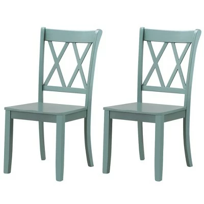 Our dining chairs will give you a wonderful dining experience!. Superior rubber wood and solid connection ensure the structure sturdy and stable for long time use. Curved backrest with double x-shape frame is ergonomically designed for offering strong support and relieving your back fatigue. And wide seat effectively distributes the pressure to provide a more comfortable seating feeling. You can sit down and enjoy afternoon tea at leisure. Its simple and elegant style is eye-catching in your home. . Specification: Color: Mint Green. Material: Rubber Wood. Overall Dimension: 17.5” x 19.5” x 39.5”(L x W x H) . Height from ground to seat: 18”. Weight Capacity: 400 lbs. Net Weight: 35 lbs. Package includes: . 2 x Dining Chairs. 1 x Instruction.
