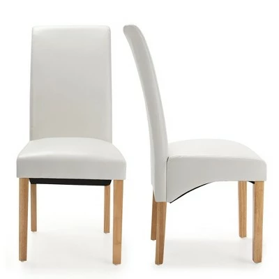 This dining chair set will be a great home decor for your living room, study, dining room, etc.. The chairs are not only sturdy with solid rubber wood legs which ensure strong weight capacity of 330lbs, but also comfortable with soft and elastic cushion. And the premium PVC leather resists well to scratch and split, ensuring the long-lasting service time. Likewise, the PVC surface is also waterproof so the daily maintenance won’t cost too many efforts. The ergonomically designed high backrest will make your back fully relaxed without any stress or fatigue. And you won’t feel pain even after long-time sitting. Also, the chair is a perfect combination of high utility and elegance. . Specification: Color:BlackBeige. Material: PVC Leather + Sponge + Rubber Wood. Overall Dimension: 18” x 24.5” x 40.5” (L x W x H) . Seat Depth: 17” . Seat Height: 19.5” . Net Weight: 60lbs. Weight Capacity: 330lbs. . Package Includes: . 4 x Dining Chairs. 1 x Instruction.