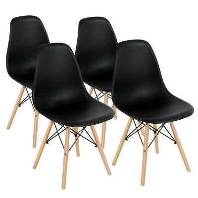 Do you worry about not having a proper dining chair set in your sweet home? A practical DSW dining chair set can freshen up your room. Our set of 4 dining chair set is elaborately crafted which is friendly to the indoor space such as kitchen, dining room, office and so on. This dining chair set is durable and stable because of the premium plastic and wood materials. The modern and stylish design decorates your living areas and creates additional space to your home. Our dining chair set is designed to be ergonomic because of the scientific curves. The chair can fit your back and hip perfectly and relieve your fatigue when you sit on it. What’s more, with the pre assembled legs, you can assemble the chair in a short time. Specification: Material: PP+ beech wood. Color:Black/White/Blue . Chair Size: 18″X19″X33″ (WxDxH) . Seat Dimension: 18″x16″ (W x D) . Seat Height: 18″. Net Weight of Each Chair:7.7 LBS. Package includes: . 4x Dining Chairs. 1x Assembly Bag. 1 x Instruction.