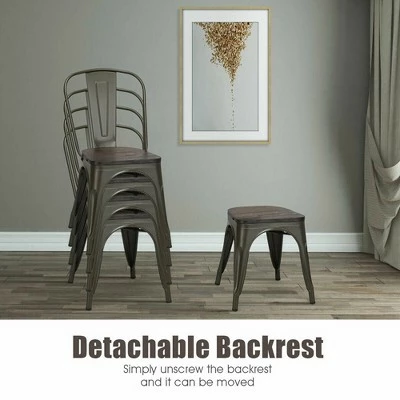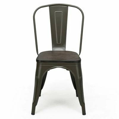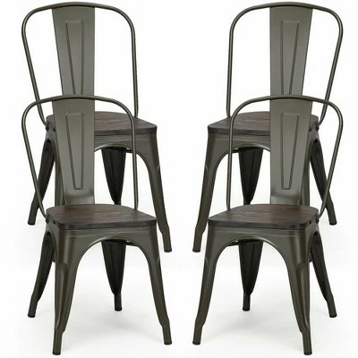 These vintage gun metal chairs afford you the comfort, stylish home furniture choice. Featuring superior metal frame and thick wood seat, these chairs is sturdy enough to hold up to 265 lbs. And each metal chair has a X-brace under the seat that provides additional support and stability. In addition, this chair includes plastic feet pads to protect your flooring and resistant to slippery. Therefore, whether you’re using this chair for your kitchen, patio or bistro, it’s sure to offer you level up your leisure time quality! Specification: Color: As the picture shows. Material: metal, elm wood. Product dimensions: 18” x 18” x 33.5” (L x W x H). Seat size: 14” x 14”. Backrest size: 18” x 16.5”. Seat height: 17.5”. Seat thickness: 0.8”. Net weight: 44 lbs. Maximum weight capacity: 265 lbs. Package includes:. 4 x metal chairs. 1 x Screw Bag. 1 x User Guide.