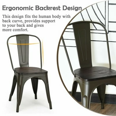- Chic Style Fit Any Decor: Using the aesthetic design and gun-colored metal surface that brings a noble, luxurious and elegant feeling. Tapered legs, wooden seat, and a rounded back frame to make for a comfortable, yet stylish chair. Perfect for kitchen, restaurant, bistro, coffee house, etc.