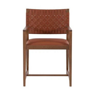 Made for sipping coffee with your morning paper or entertaining guests at dinner parties, this armchair was built with style and comfort in mind. The minimal silhouette lends to a midcentury aesthetic that is juxtaposed by rustic brown leather in the upholstered seat and interwoven backrest. Made of solid beechwood for long term strength and stability, the frame is covered in a warm light brown stained and lacquered finish that locks out moisture and is a breeze to clean. This Italian made piece arrives fully assembled and supports up to 300 lbs.