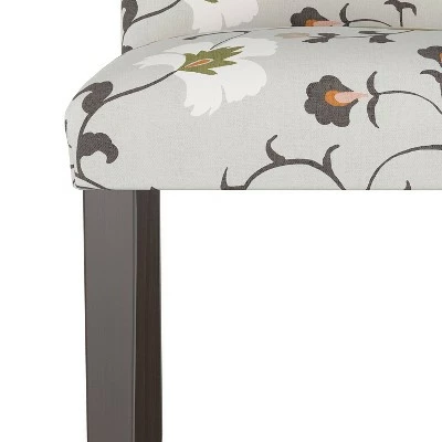 This Dining Chair from Threshold™ brings a pop of fresh style to your dining room or living space. It features an armless design with a subtly angled backrest for comfortable sitting, along with a well-padded seat for the perfect place to sit and enjoy conversation over food or drinks. Complete with a dark finish on the rubberwood frame and a lovely floral upholstery in muted colors on a gray backdrop, this armless dining chair pairs easily with a range of decor styles to bring comfort and the sleek aesthetic you love to any space.