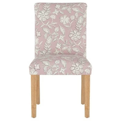 Bring the blushing sweetness of spring to your eating space with the sleek and functional design of this Dining Chair from Threshold™. An armless silhouette and subtly angled backrest make for comfortable seating, while the sturdy rubberwood frame ensures lasting use. Complete with a light finish on the legs and upholstered in gorgeous fabric with a floral print on a blush pink backdrop, this armless dining chair pairs easily with a range of decor styles thanks to its sleek and simple design.