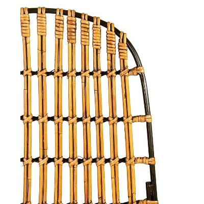 - Earthy rattan and black-finish metal frame bring rustic and industrial charm to your dining space