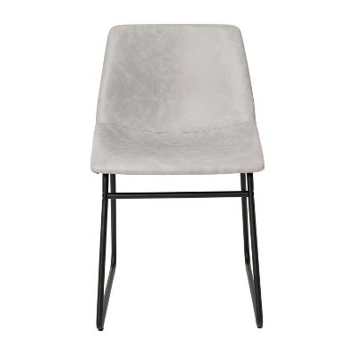 Add a touch of understated elegance to your kitchen, dining room, or cafe with this set of 2 light gray indoor table height chairs. Boasting soft and durable LeatherSoft upholstery paired with a black base, this bucket style dining room chair lends an upmarket style to your commercial or residential space. The low bentwood back of this short dining room chair supports the lower back region allowing you to linger over meals at home or your patrons to stay a while in your neighborhood restaurant. Whether you’re furnishing your home or business, a quality product is number one on your must-have list. Featuring a solid iron frame with metal screw reinforcements, this standard height dining chair will be a long-lasting addition to any space. Fixed plastic floor glides will prevent damage to your hard flooring surfaces. Easily clean your new stools with water followed by a dry cloth to maintain their great looks. These dining chairs assemble in under 10 minutes for quick and easy setup. Additional Features: Quick and easy to assemble in 10 minutes, Comfortable sled base dining chairs with bucket seat provide a timeless and casual look