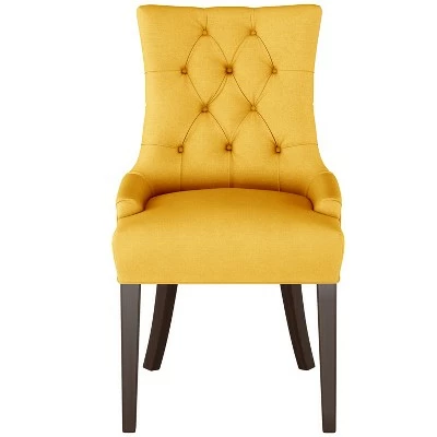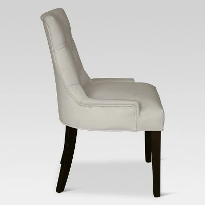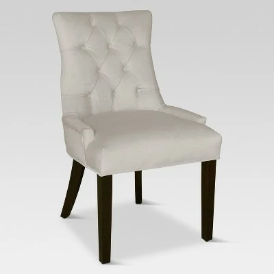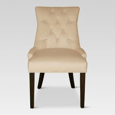 Bring a classical English motif right into your dining room with this English Arm Dining Chair from Threshold. The upholstered construction, tufted design and English arms bring an elegant flourish to your home. Whether you’re pulling it up to your dining table, using it as a desk chair or placing it in a dressing room, it’ll bring a polished look with a hint of luxury to your space.