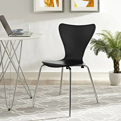 Minimalist in nature though it may be, this seat doesn’t skimp on comfort. Sitting atop sleek splayed metal legs, the solid plywood seat on this vintage modern dining chair offers supportive comfort with its waterfall edge and organic winged backrest. Its seemingly rigid design, flexes to the contours of the human body, making it a great side chair for dining and home office use.