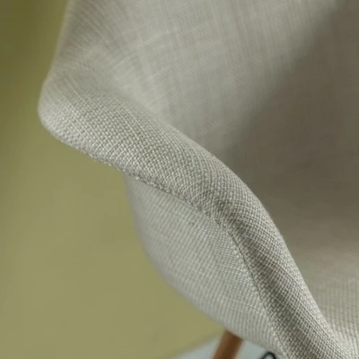 - COMPOSITION: The chair seat and backrest are molded with solid polypropylene (PP) plastic, a sturdy recyclable material, and covered with a light grey fabric. The rocking style legs are made with solid beech wood in a natural wood color, showcasing its beautiful wooden grain.