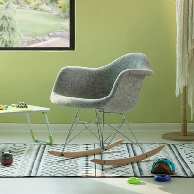 Embrace classic mid-century modern style with the timeless plastic shell dining rocking chair design. Crafted with a one-piece molded plastic chair seat and back covered with fabric, this side chair is perhaps the most comfortable, practical, and durable seat youll ever sit upon. Made with recyclable polypropylene (PP) plastic, the chair seat is ergonomically molded to with bend resistant back support. Assembly is easy; the wooden solid beech rocking legs come pre-assembled, so you will only need to screw them into place. These armless chairs feature a basic modern minimalist design that looks especially great in Nordic, Scandi, and contemporary homes, but their simple clean design lets it fit in with any home dcor theme. Youll want them in every room in your house; kids rooms, nurseries, baby rooms, dinette, dining room, living room, study, or home office!