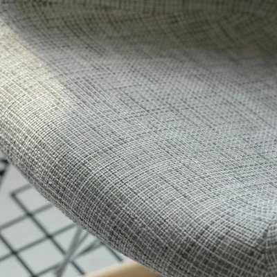 - COMPOSITION: The chair seat and backrest are molded with solid polypropylene (PP) plastic, a sturdy recyclable material, and covered with a light grey fabric. The rocking style legs are made with solid beech wood in a natural wood color, showcasing its beautiful wooden grain.