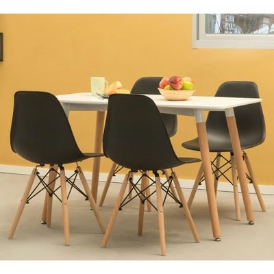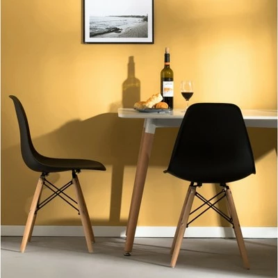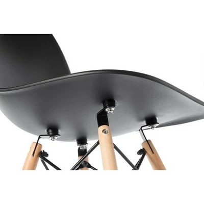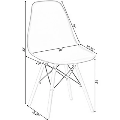 Embrace classic mid-century modern style with the timeless plastic shell dining chair design. Crafted with a one-piece molded plastic chair seat and back, this side chair is perhaps the most comfortable, practical, and durable seat youll ever sit upon. Made with recyclable polypropylene (PP) plastic in a matte, subtly textured finish, the chair seat is ergonomically molded to with bend resistant back support. Assembly is easy; the four wooden solid beech dowel legs come pre-assembled, so you will only need to screw them into place. Non-scratch leg caps will protect your floor from scratches and keep the chair evenly leveled. These armless chairs feature a basic modern minimalist design that looks especially great in Nordic, Scandi, and contemporary homes, but their simple clean design lets it fit in with any home dcor theme. Youll want them in every room in your house; kitchen, dinette, dining room, living room, study, or home office!