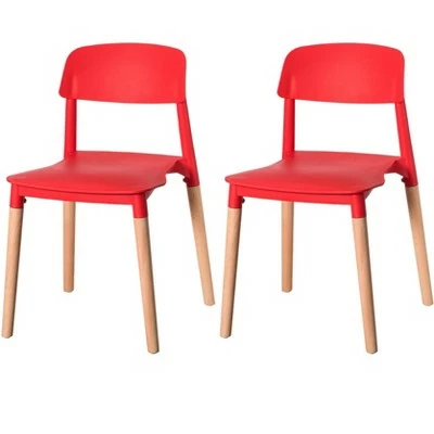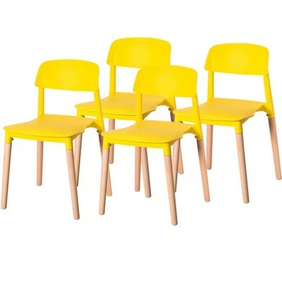 - COMPOSITION: The entire chair is molded with solid polypropylene (PP) plastic, a sturdy recyclable material. The legs are made with solid beech wood in a natural wood color, showcasing its beautiful wooden grain.