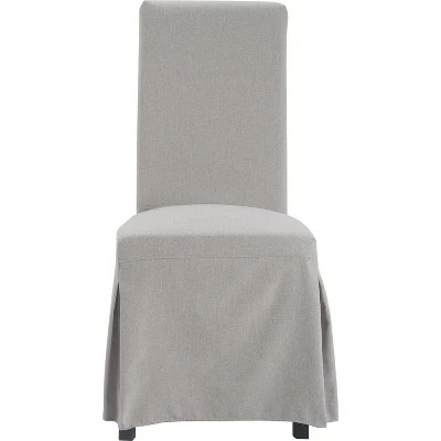 The Hayes Slipcover Dining Chair is a nice option if you want to give your dining space a new look. Sold as a set of two, these armless chairs have a high-back design and a generous seating area, resulting in a design that can be incorporated into many room styles. The slipcovers are upholstered in a soft polyester fabric with a linen feel and are available in your choice of light gray or cream. The long skirt on the slipcover hides the chair legs, bringing a sense of uniformity the chairs. The slipcovers are removable for easy cleaning, allowing you to keep the room looking pristine.