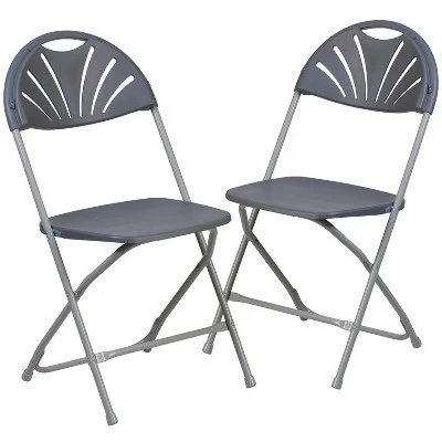 Imagine getting to setup these gorgeous fan back plastic folding chairs outside your venue where wedding ceremonies are held on sunny days as guests sit excitedly awaiting the arrival of the bride. Plastic folding chairs offer an easy seating solution for formal and informal events. Plan high tea, weddings, baby showers, and social events for clients. Folding chairs are more than ideal for the home to accommodate additional people during dinner parties, holidays, game nights, barbecues and book clubs. Their foldable design allows you to store them in your hall closet, garage or underneath furniture if you’re tight on space. With an 18-gauge steel frame built to hold up to 650 pounds you’ll have no problem seating all guests. Although designed for indoor use these foldable chairs have drain holes in the seat to prevent water from pooling during outdoor affairs and the textured seating surface is easy to clean after the most hectic events. Have your facilities manager stock plenty of these popular party chairs. After events these folding chairs stack on top of each other for compact storage, pair with a dolly to transfer between locations or keep them stored on the dolly. Additional Features: Dry assisting drain holes, 18 Gauge Steel Frame, Powder Coated Frame Finish, Non-Marring Floor Caps, Folded Size: 17.5″W x 3″D x 42.5″H