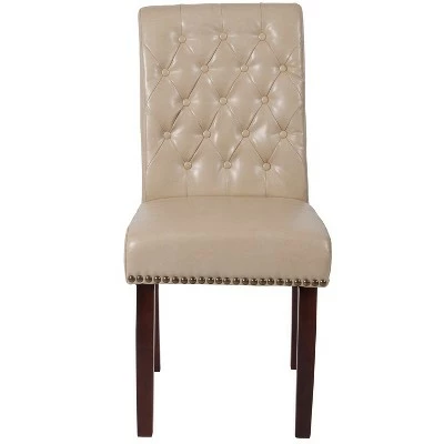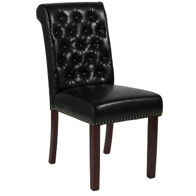 The classic leather upholstered parsons chair is a versatile seating option for your home. Sleek lined panel stitching, high density foam padding, solid hardwood frame construction, mahogany frame finish and leather upholstery make them comfortable, durable and attractive. Parsons Chairs with leather upholstery bring a polished look to your home. And easy cleaning is especially important in the dining room. Skirted chair covers can be used to soften their lines for living rooms and bedrooms. Order a set of Parsons Chairs for your dining room! Additional Features: CA117 Fire Retardant Foam, Wooden Legs, Floor Protector Plastic Glides, Designed for Residential Use Only, LeatherSoft is leather and polyurethane for added Softness and Durability