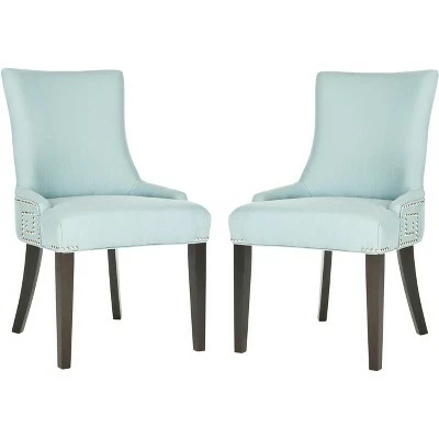 For dining rooms of casual elegance, the sleek profile of the Gretchen Side Chair offers comfort and style. A unique Greek key motif crafted of nail heads contrasts linen and birch wood legs in an espresso finish. Sold in sets of two. Care Instructions: To prevent overall soiling, frequent vacuuming or light brushing is recommended. Cushions and pillows should be turned on a weekly basis. Down filled cushions should be brushed rather than vacuumed. Spot clean, using a mild water free solvent or dry cleaning product. Only a professional cleaner should undertake a complete overall cleaning. The use of steam or water based cleaners may cause excessive shrinking or staining.