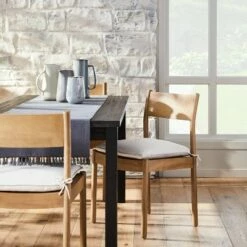 Make your dining setup more comfy by adding this Wood Dining Chair with Cushion from Hearth & Hand™ with Magnolia. Crafted from wood in a natural finish, this dining chair easily integrates into your existing dining decor. Boasting a curved seat and back, this wood dining chair with removable cushion brings a sleek update to your space.
