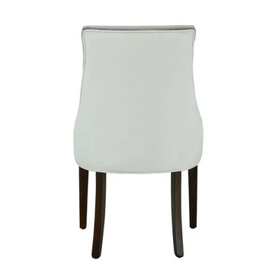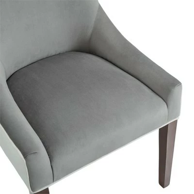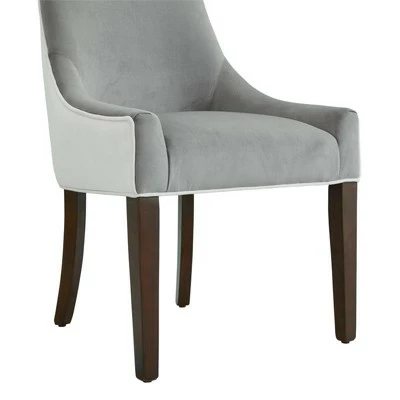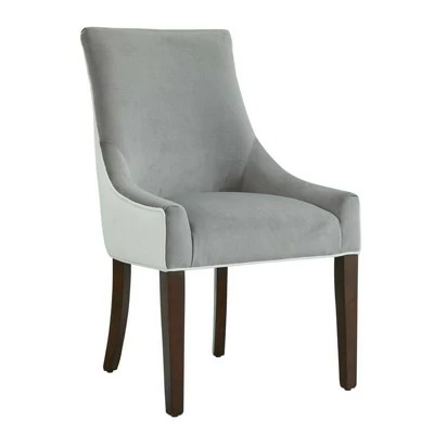 Entertaining in style is easy with the elegant silhouette of the Jolie Dining Chair. Plush fabric in a designer two tone look accents the sloped arms and wrap around back. Solid hardwood legs in a walnut finish give a traditional aspect to this modern, yet classic dining chair. Floor glides included to protect your floors. Available in Navy, Smoke and Seafoam.Features : Smoke and Snow Upholstery, Walnut Wood FinishHardwood and plywood frame constructionMinor Assembly, just attaching legs to seatTwo tone fabric combinationPlush foam seating for comfortDurable easy to clean polyester fabricSolid wood legsPlastic floor glides to protect your floorsSpecifications : Product Weight : 23.76 lbs.Seat Dimensions : 19.5″H x 18″W x 18″DArm Height : 19.75″ HProduct Dimensions : 36″H x 22.25″W x 22″D