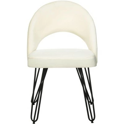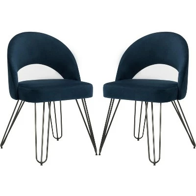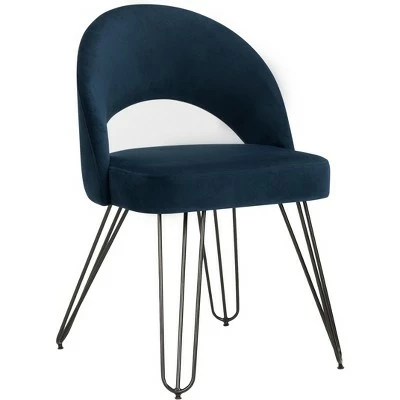 An unexpected find in a San Francisco flea market inspired this retro dining chair. Its cute cut out style with soft velvet upholstery is perfect for adding elegance to any modern dining room or living room. Designers love its black hairpin legs. Care Instructions: To prevent overall soiling, frequent vacuuming or light brushing is recommended. Cushions and pillows should be turned on a weekly basis. Down filled cushions should be brushed rather than vacuumed. Spot clean, using a mild water free solvent or dry cleaning product. Only a professional cleaner should undertake a complete overall cleaning. The use of steam or water based cleaners may cause excessive shrinking or staining.