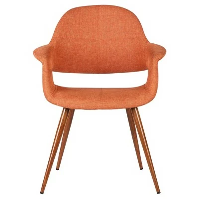 The Armen Living Phoebe contemporary armchair is a well-proportioned, unassuming, and yet simply elegant addition to your modern dwelling. Add some color to your home with this bold and stylish mid-century designed dining chair. Upholstered in textured fabric over a hardwood frame and complete with a generously cushioned seat and back, the Phoebe is the epiphany of comfort and style. This brilliant chair also features padded armrests for further relaxation. Its walnut wood finished metal legs further enhance its mid-century appeal while assuring durability. The curved wood medium high back is ideal for posture alignment and an unmatched support for days on end. The high-density cushion foam is deal for all day comfort in any space in your home. The foundation of the product is supported by solid walnut wood for a chic and stylish aesthetic without comprising practicality and functionality of this item. This product ships in one box with easy and quick set up. We stand by the quality, the craftsmanship and the integrity of our product by offer 1-year warranty for all our products. We want our customers enjoy our product and we will always be there to help with our top-notch customer service support. Excellent choice for a Modern, Contemporary, and Mid-Century Dining and Kitchen setting. The Phoebe barstool will add a touch of distinction and elegance to your home bar or dining room with its ultra-modern design, clean lines and stylish shapes. The Phoebe is available in Gray, Green and Orange Fabric upholstery. Product Dimensions: 25″W x 24″D x 33″H SH: 18″