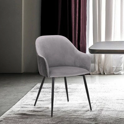 The Armen Living Pixie Dark Gray and Black Fabric Dining Room Chair with Black Metal Legs is a welcome addition to any home regardless of existing design theme. This universal can easily be used in your dining room or kitchen as a dining chair, your home office, bedroom, or living room as accent chairs. The soft fabric upholstery covers a high-density foam cushion that provides comfort for long sitting periods but also features ergonomic properties to keep your back healthy and properly aligned. The black metal legs give the chair a modern look and make this chair a truly stand out piece of furniture that will provide comfort and durability for many years to come! The Pixie Fabric Dining Room Chair with Black Metal Legs is available in your choice of Black with a Dark Gray Upholstered back, Dark Gray with a Black Upholstered back, or a two-tone Teal upholstered option, all featuring black metal legs.
