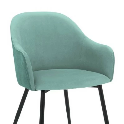 The Armen Living Pixie Two Tone Teal Fabric Dining Room Chair with Black Metal Legs is a welcome addition to any home regardless of existing design theme. This universal can easily be used in your dining room or kitchen as a dining chair, your home office, bedroom, or living room as accent chairs. The soft fabric upholstery covers a high-density foam cushion that provides comfort for long sitting periods but also features ergonomic properties to keep your back healthy and properly aligned. The black metal legs give the chair a modern look and make this chair a truly stand out piece of furniture that will provide comfort and durability for many years to come! The Pixie Fabric Dining Room Chair with Black Metal Legs is available in your choice of Black with a Dark Gray Upholstered back, Dark Gray with a Black Upholstered back, or a two-tone Teal upholstered option, all featuring black metal legs.