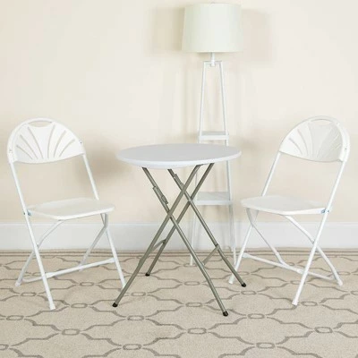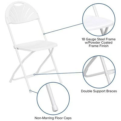 Imagine getting to setup these gorgeous fan back plastic folding chairs outside your venue where wedding ceremonies are held on sunny days as guests sit excitedly awaiting the arrival of the bride. Plastic folding chairs offer an easy seating solution for formal and informal events. Plan high tea, weddings, baby showers, and social events for clients.