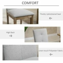 HOMCOM High Back Dining Chairs Set of 2 Tufted Fabric Upholstered Armless Side Chairs with Solid Wood Legs for Living Room Kitchen Study Grey