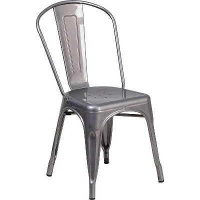 Instantly add an urban look and feel to your dining area with this clear coated stackable metal chair with vertical slat back and drain hole seat! This chair’s curved, vertical slat back provides firm spinal support. Additionally, its flat, drain hole seat is easy to clean and ensures guests are at a comfortable height to enjoy your signature drinks, appetizers, entrees, and desserts. Made of sturdy metal, this chair is durable enough to withstand years of use. Its under-seat cross brace provides additional stability, and its lightweight design allows for easy movement and transportation.