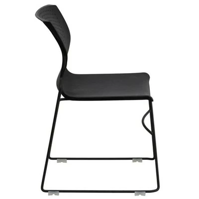 - Ergonomic multipurpose sled base stack chair, durable polypropylene material, black powder coated frame, plastic ganging floor glides/clips