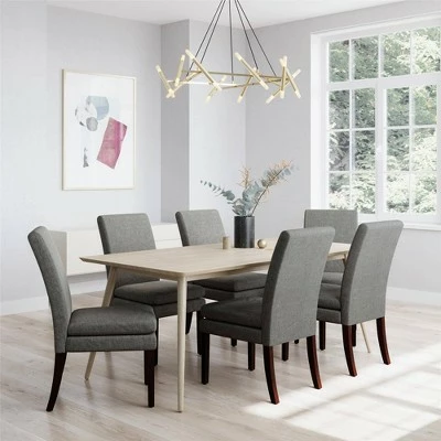 A kitchen and dining room area can’t be complete without the perfect seating for you to create memories with your friends and family. Introducing the Room & Joy Cale Upholstered Dining Chair; the simple contemporary design that will add comfort and a touch of classic charm to your home. Upholstered in a soft linen upholstery, the Cale’s construction also includes a high backrest, a pillowtop seat cushion and solid wood legs that help provide it with long lasting durability. Sold as a set of two. Complete the look by adding the Room & Joy Cale Upholstered Counter Stool to your dining room!