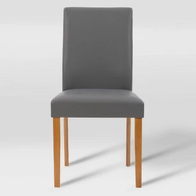 Whether a dinner party, festive family feasts and casual meals alike – your dining room is a hub of the home. Update your dining space with this leatherette padded high back dining chairs in a neutral gray with wood grain legs. Coming in a set of two, this is a great option for any dining area.