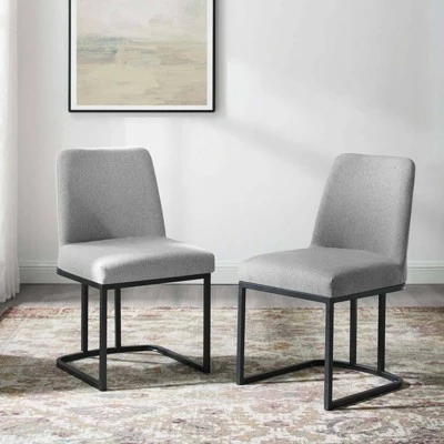 Striking lines and simple form blend to produce the Amplify Upholstered Fabric Sled Base Dining Chair. A boldly flowing matte black stainless steel sled base supports the premium seating experience produced by the soft and durable polyester fabric upholstery for a dining chair suitable for a variety of decor styles. Dense foam padding and gentle curves accent the glam deco elegance of the Amplify Dining Side Chair. Whether the Amplify Accent Chair is gracing your dining room, living room, lounge room, or office, visitors and guests will comment on this eye-catching addition. Chair Weight Capacity: 331 lbs. Assembly Required.